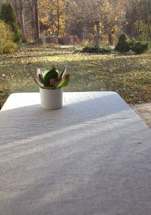 Extra large natural linen tablecloth. Made from a 100% pure sturdy European linen. Shall last you a lifetime and more. Lovely soft melange creamy tone.