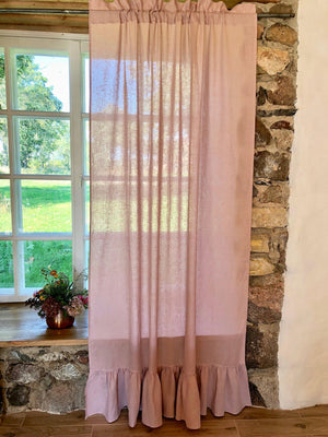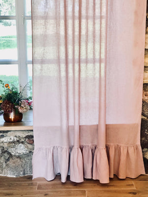This is wonderful curtain panel with rod pocket and decorative ruffle on the bottom.
