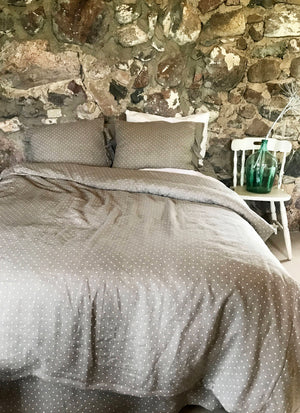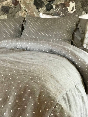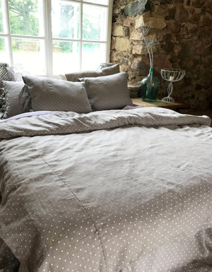 A sweet looking polka dot linen duvet cover.