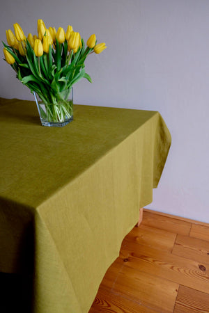 Energise your dining table with this linen tablecloth made form moss green linen threads.