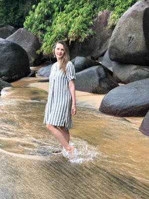 Each piece is individually cut, sawn and pre-washed. We really love making dresses for various sizes - from petit to plus size and more. For the best fitting of this dress please let us know the following measurements:
