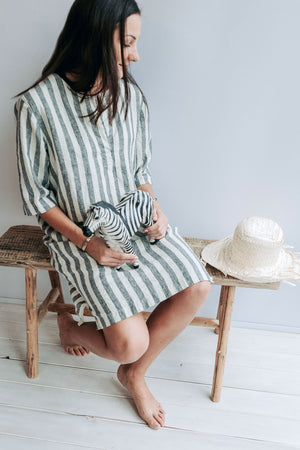 Loosely fitted very comfortable linen tunic dress with a split neckline, extended rear and slits on both sides. Wear it with leggings, trousers or as is.