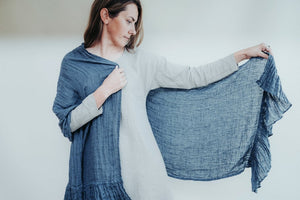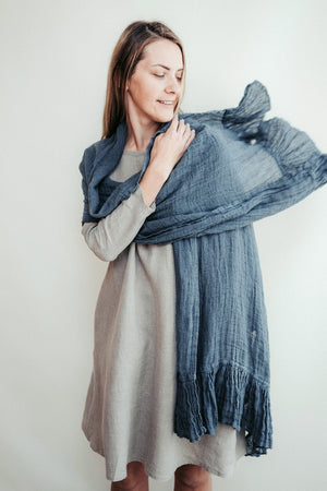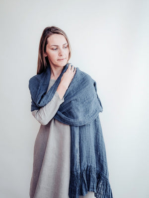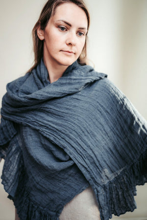 Stunning linen shawl made from gauzy, 100% pure linen. Can order in greyish blue color or natural taupe.
