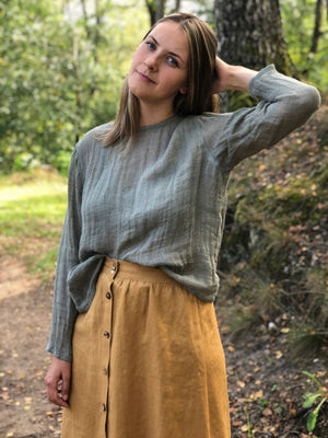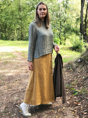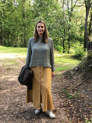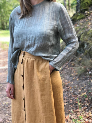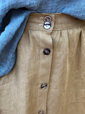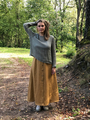 Bring back the 60s! Beautiful linen ankle-length skirt with pockets and buttons.