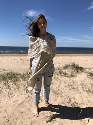 This is a gorgeous oversized natural linen scarf. Soft and airy, made from fantastic quality, soft Belgian linen.