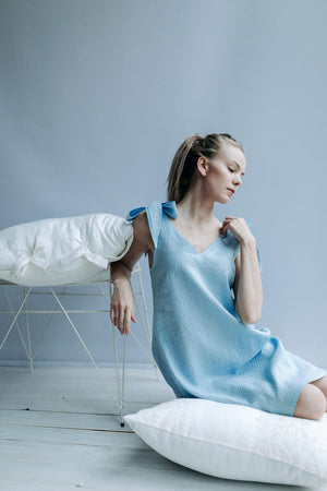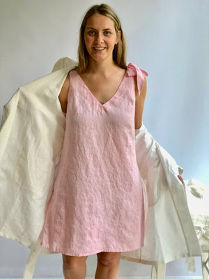 Romantic linen night gown with beautiful tie straps. Can be worn also as a dress. Made from 100% pure linen. Simple. Eco-conscious. And a lovely gift.