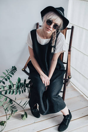 Ready to ship. Linen Pinafore Dress, Black Linen Sundress, Sleeveless Dress, Plus Size Sundress, Linen Dress Women Jumper dress, Pinafore Maxi Dress Black