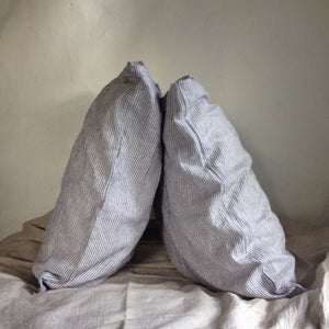 Set of two linen pillowcases from blue and white striped linen. Made from 100% European linen (see the last image - thinner stripes). Covered closing with french ties.