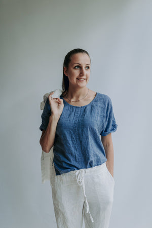 Linen being highly absorbent fabric, the top will allow your body to breathe and feel at ease. And the more you wear and wash it the more it will gain in its character and softness.